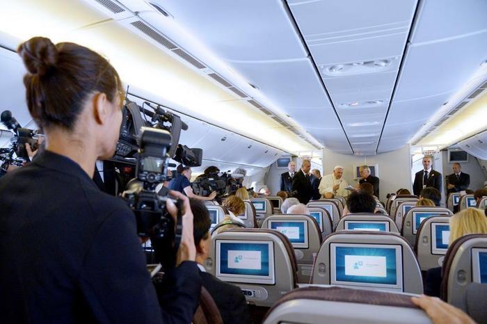 Francesco in aereo: “Unioni civili? Il Papa è per tutti, non si immischia in politica”