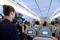 in conferenza stampa gli operatori dei media a bordo dell’aereo.